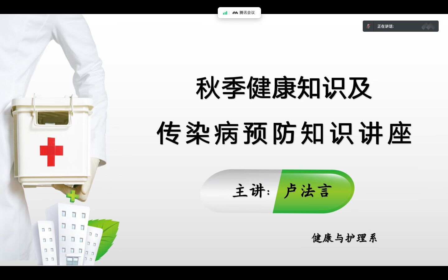 为了增强学生对秋季传染病的防治意识,提高学生的健康素养,8月22日,齐齐哈尔工程学院开展“秋季健康知识及传染病预防”知识讲座,此次讲座由健康与护理系护理学221班班长卢法言主讲。