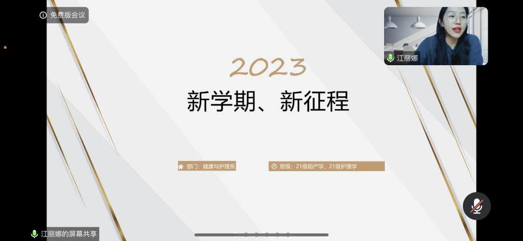 2023年8月14日,护理学212班通过腾讯会议线上组织开展“专业实践学期总结”主题班会,本次会议由辅导员江江丽娜主持,护理学212班全体成员参加。