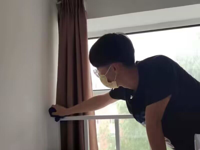 学长们分别在各公寓楼下及室外分担区集合,并根据具体安排迅速展开工作,打扫寝室、教室、室外等。大家不怕脏,不怕累,从天花板到地面,从床铺到桌椅,不放过任何一个卫生死角,认真擦拭窗台、窗户、床角、床板、门缝,对每一间宿舍进行全面清洁,力求为新生创造一个洁净舒适的寝室环境。在大家的共同努力之下,窗明几净,整个宿舍焕然一新。随后,学长们对室外分担区进行清扫,将室外的杂草、白色垃圾等逐一进行了清理。虽然天气炎热,但大家的情绪依然高涨,在整个清扫过程中,学长们没有丝毫懈怠,力求做好迎新第一步。