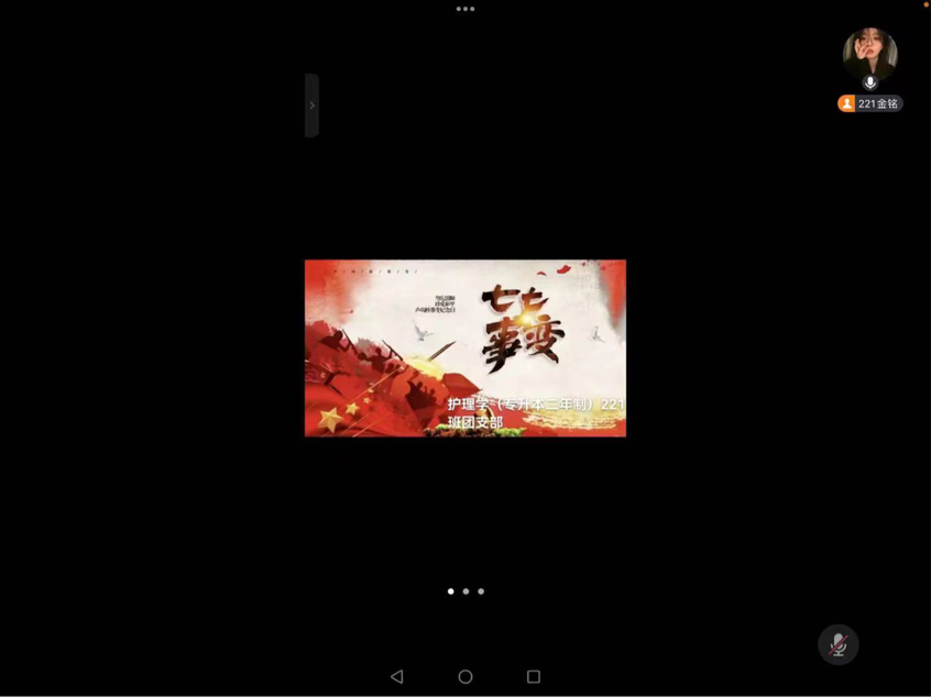 护理学专(专升本二年制)221班与2023年7月7日下午六点,由金铭同学组织开展线上“七七事变”团日活动,参与人员护理学(专升本二年制)221全体成员。
