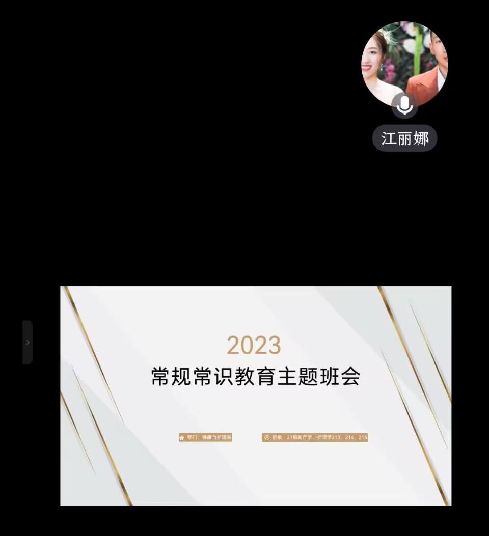 为进一步加强落实学校常规常识教育,让同学们了解常规常识的相关内容。遵守相关规定,保障同学们的安全。因此2023年7月6日,于腾讯会议组织开展“常规常识教育”主题班会。本次会议由辅导员江丽娜组织开展,护理学213班全体同学参加。