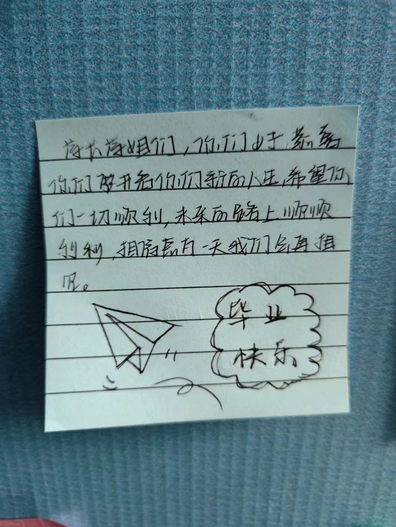 心有情,爱不赘,仅三行,无论哪种感情,作为学弟学妹的我们,应将自己祝福写在书面上,以这样的方式来表达对各位学长的祝福和不舍,为他们送出属于你自己的那份祝福。