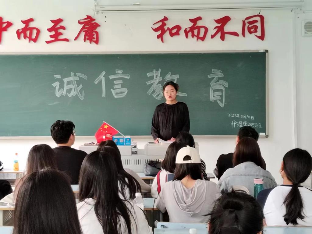 为弘扬诚实守信的传统文化和现代契约精神,推动诚信机制和校园诚信文化建设,进一步把我校的优良传统和诚信教育活动引向深入,帮助学生牢牢树立诚实守信观念,引导学生做诚实人、讲诚实话。2023年5月31日,护理学205班于1#1201组织开展“诚信教育”主题班会。会议由辅导员杨嘉琪老师主持,护理学205班全员参加。