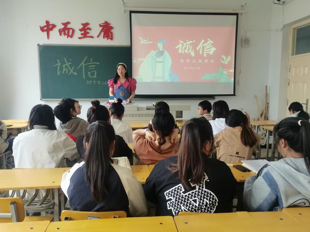 为让同学们了解国家助学贷款资助政策,普及征信、金融等相关知识,宣传诚实守信事迹,增强法律意识,履行国家助学贷款合同,有效地将诚信教育转化为大学生自觉的素养与行为。2023年5月30日,健康与护理系助产学211班于1#1301组织开展“资助诚信教育”主题班会,本次活动由辅导员 江丽娜主持,助产学211班全体同学参加。