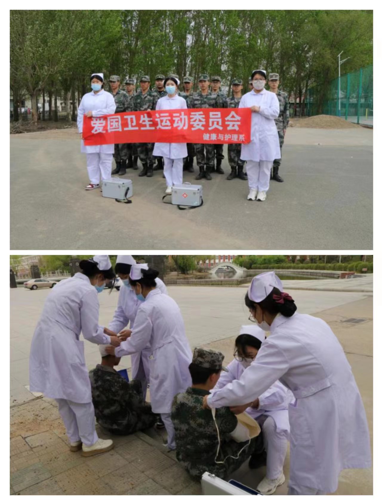 演练过程中,爱国卫生运动委员会社团认真配合校保卫处,对受伤人员进行紧急包扎处理,体现了护理学子的专业与负责。