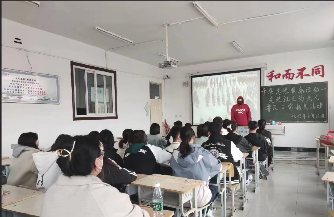 2023年4日18日,护理学214班于1#1202组织“开展志愿服务活动--走进社区为老人普及日常相关法律”主题班会,由班长赵博组织开展,护理学214班全体同学参加。