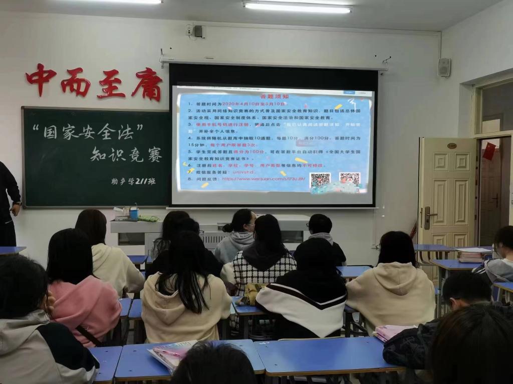 为营造良好的《中华人民共和国国家安全法》宣传教育氛围,宣传普及《中华人民共和国国家安全法》,提高学生依法防范和打击危害国家安全行为的意识。2023年4日17日,助产学211班于1#1302组织开展“国家安全法知识竞赛”主题班会,本次会议由班长马岩主持,助产学211班全体同学参加。