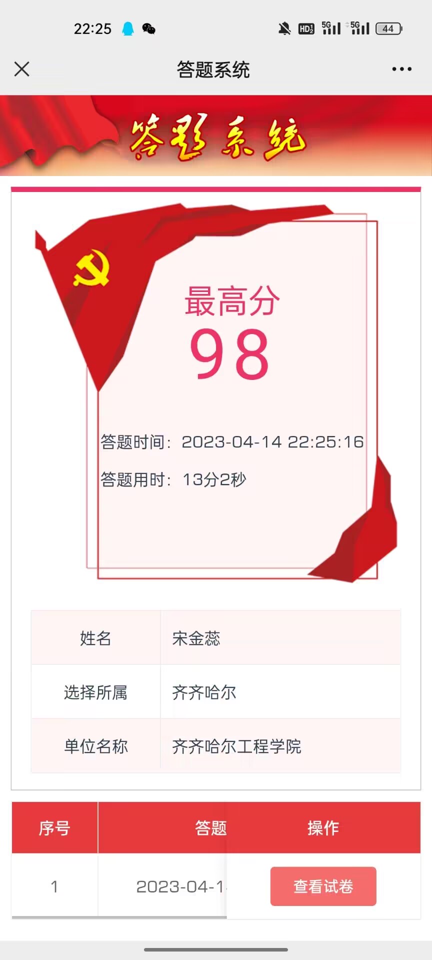 首先,学生们在龙江先锋网首页进行学习。其次,学生们进行答题测试。此次测试采取线上的形式,通过单选多选的方式进行考查学生对国家安全法的学习掌握情况。同学们认真思考并作答。答题完毕后上交答题情况,并附答题截图。大家认真并按时完成答题。截止4月13日晚,护理学225班全体同学共有34人参与本次答题测试。