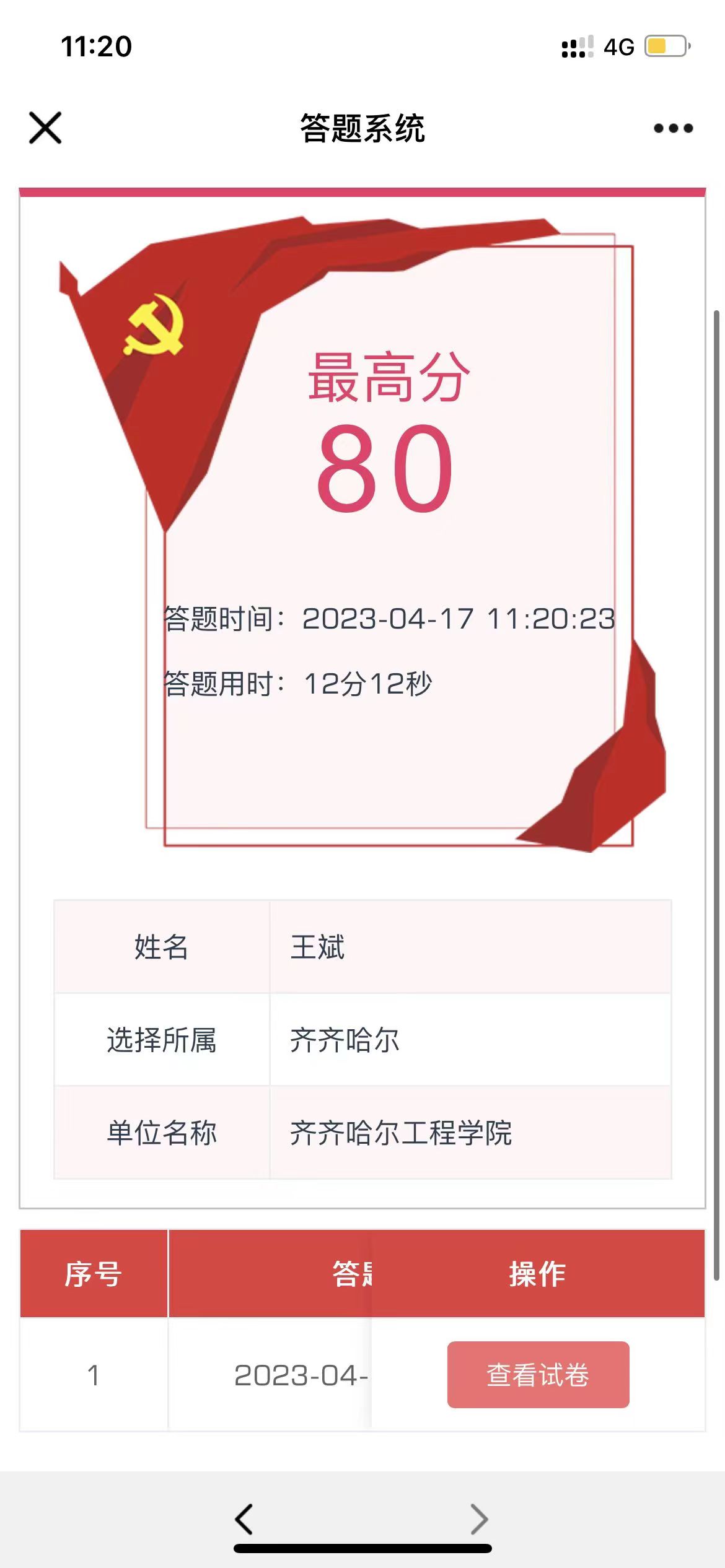 首先,学生们在龙江先锋网首页进行国家安全法专题学习,并进行国家安全图片展浏览。随后,学生们进行答题测试。此次测试采取线上的形式,内含单项选择题、多项选择题等,全面考查学生对国家安全法的学习掌握情况。学生们在繁忙的学习之余积极参与答题、仔细审题、认真思考、有效作答。答题完毕后全天随时上传答题情况,并附答题截图。大家主动学习,按时完成答题。截止4月13日晚,护理学222班全体同学共有43人参与本次答题测试。
