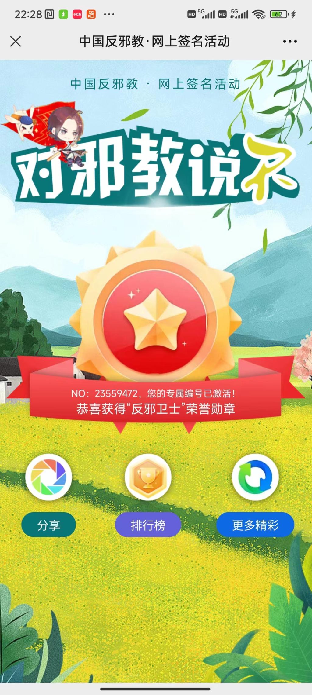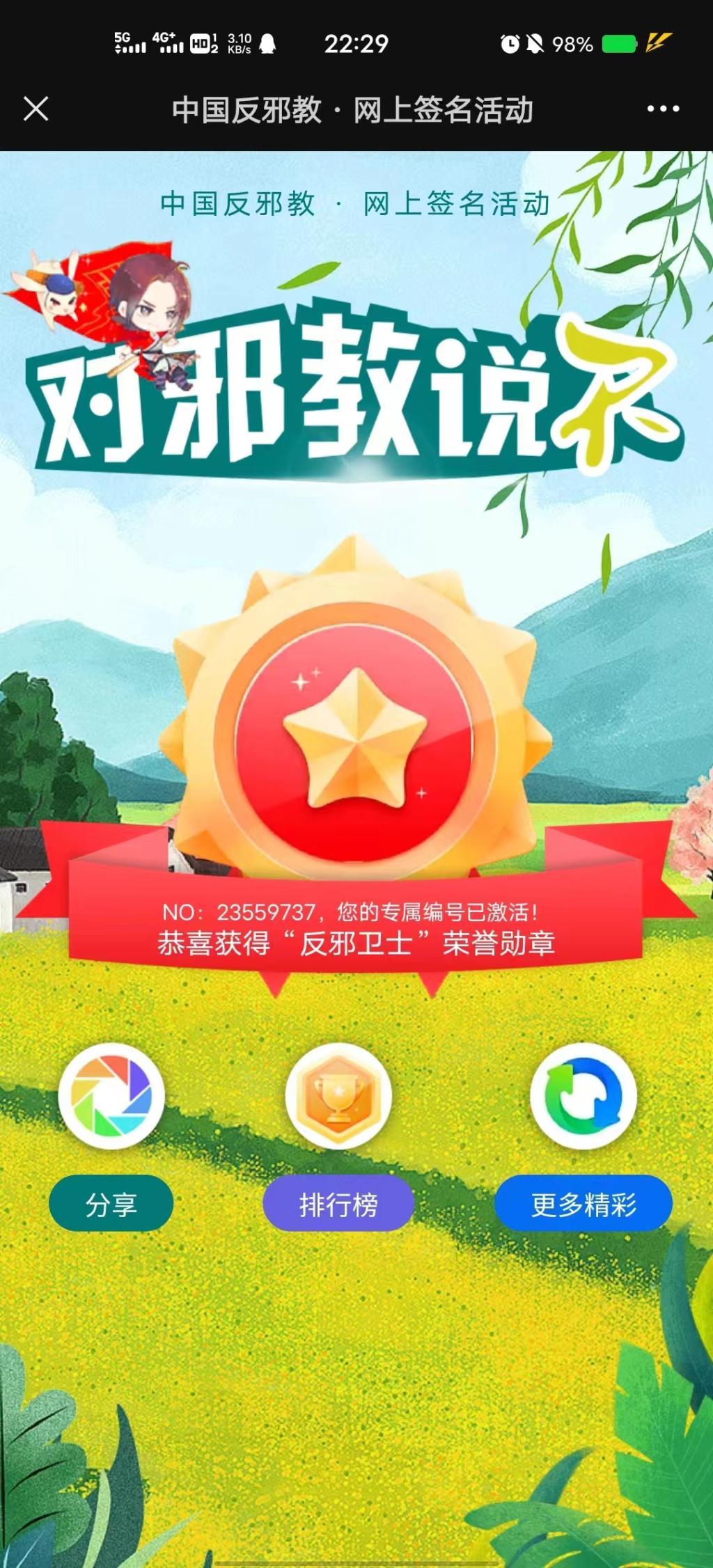 活动初始,姜宏伟老师于系内发布活动通知并要求学生们关注“中国反邪教”微信公众号,进行反邪教答题,在活动进行中,健康与护理系的同学们都顺利完成了题目作答,并取得了中国反邪教证书。