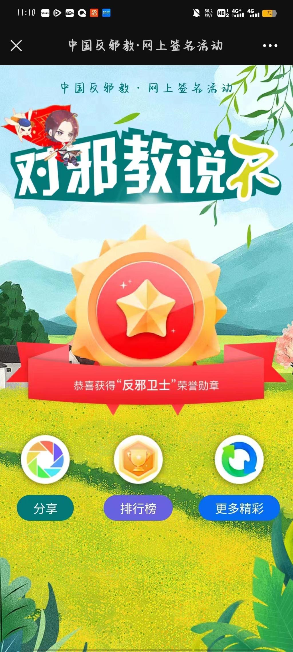 为进一步提高学生们识邪、防邪、拒邪和反邪能力,护理学222班于2023年4月3日组织开展关注“中国反邪教”公众号活动。