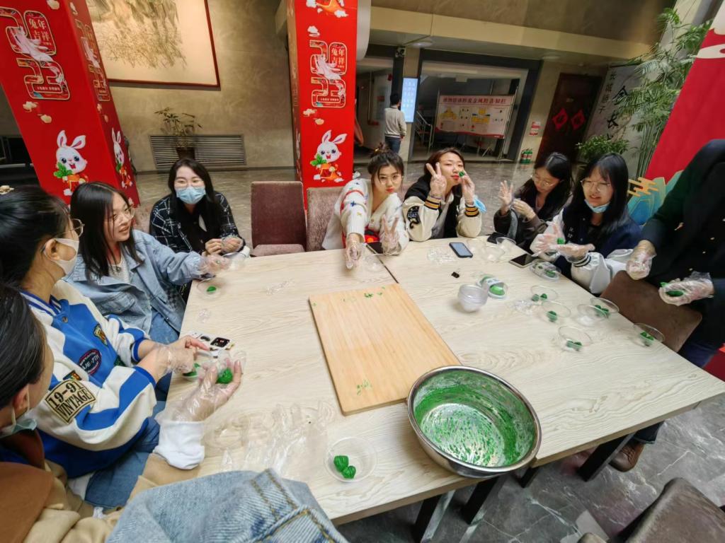 同学们早早自行来到博物馆门口集合,在馆口进行了班级大合照。齐齐哈尔市博物馆整体建筑风格为仿古式,通过一楼大厅的巨型浮雕《嫩江——母亲河》集中反映了齐齐哈尔市以鱼猎文化为代表的嫩江流域多民族聚居的古代文明。因临近清明,一楼大厅还举办了做青团的活动,自己动手品尝限定的美食不免是一个美妙的事。接着,团支书毕明阳给同学们介绍了博物馆的建设,她说:“全馆有主要展厅7个,另有多个配套展室及多媒体会议厅、电影厅、文化艺术品展销大厅等。”她还带领大家参观了雷锋事迹介绍、军都督府等,同学们文明参观、有序地参观,拍下了许多历史的印记。