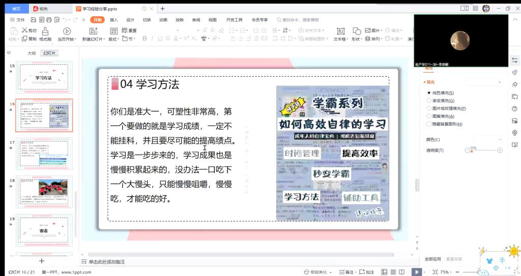 为加强学风建设,提高大一新生的学习兴趣,使其能更快、更好的融入到大学生活中。2023年3月21日,健康与护理系《成长助学》学长经验分享会于腾讯会议举行。本次分享会由健管211班王苗苗、刘莹莹,助产学211班李思懿主持,助产学221班全体同学参加。