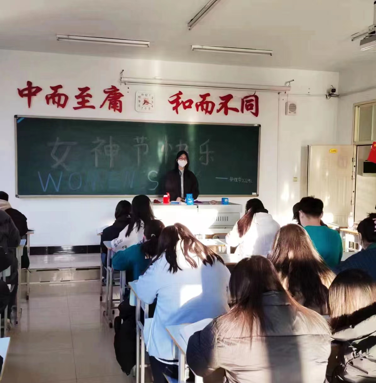 护理学222班于2023年3月8日早上7:00在1#1201组织开展“3.8国际妇女节”主题团活,活动由团支书李圆圆主持,护理学222班全体同学参加。活动初始,由团支书李圆圆为大家分享了关于国际妇女节的历史和由来,让大家更加了解并尊重这个特殊的日子。随后,为了活跃气氛,团支书组织大家进行小游戏活动,同学们放松了身心,增进了彼此的友谊。最后,为了庆祝国际妇女节,男同学们写了一些祝福语并随机送给女同学们,表达了对她们的敬意和祝福。至此,活动圆满结束。