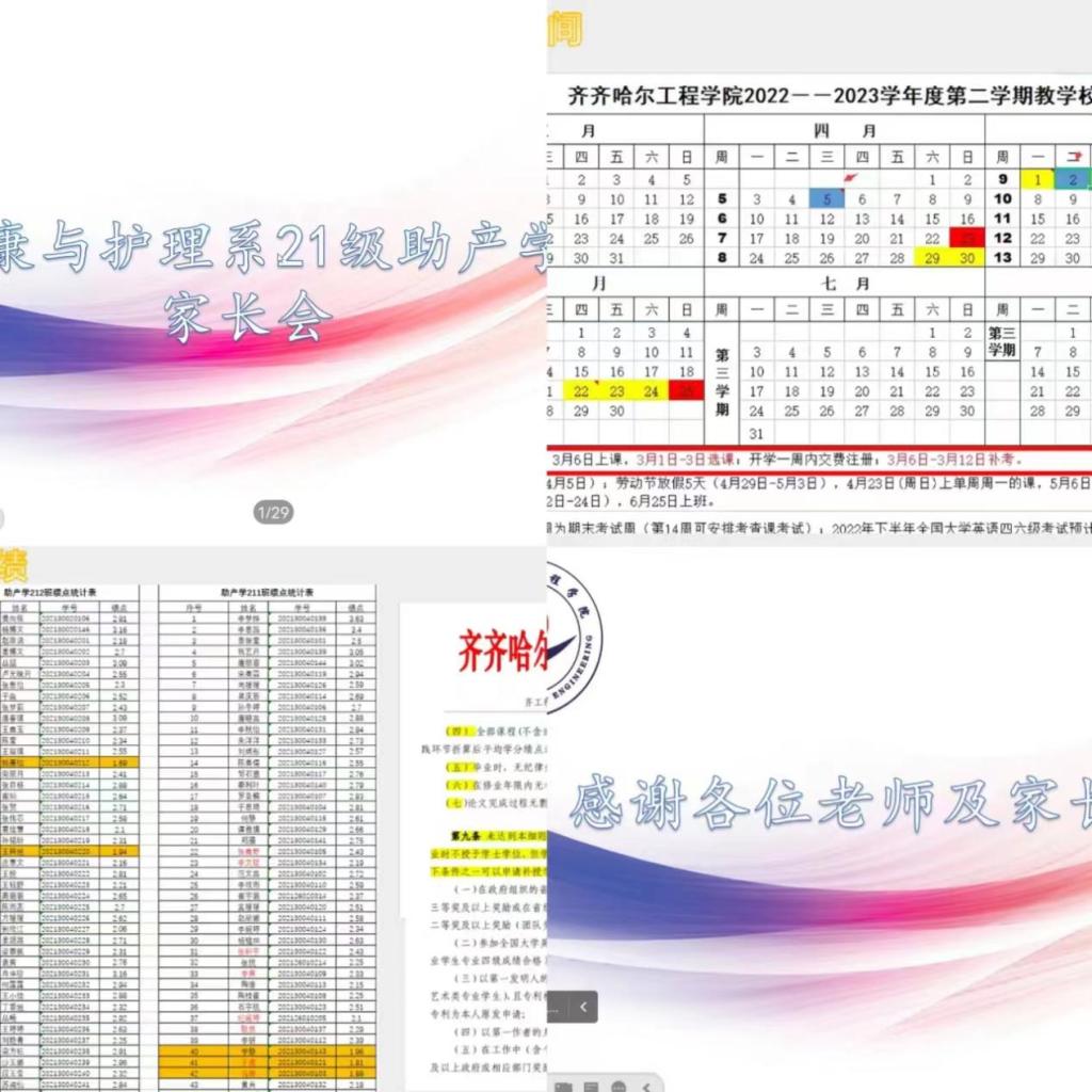 为了进一步增加学校和家庭、教师和家长之间的沟通,让每位家长了解同学们在校的学习情况。健康与护理系21级助产学专业家长会于2023年2月27日晚18时在腾讯会议进行召开。本次会议由21级助产学专业辅导员江丽娜老师、专业长孙畅老师共同主持,21级助产学专业所有家长参会。