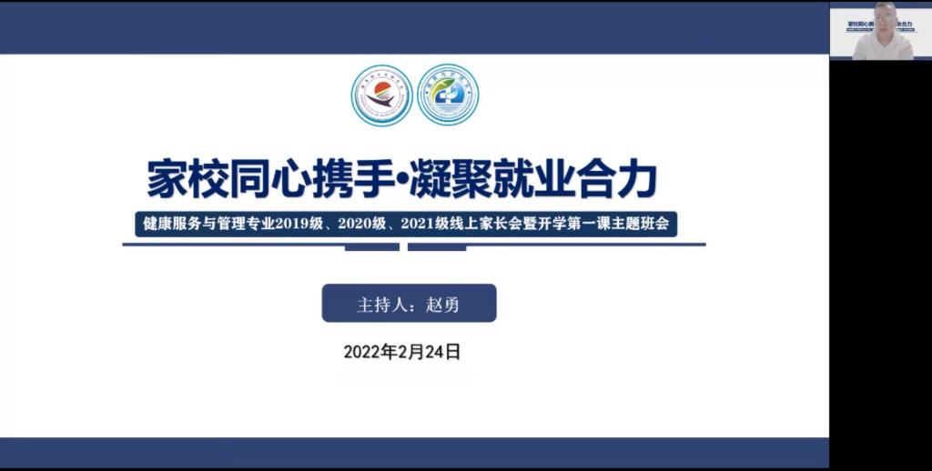 本次云家长会暨新学期主题班会的召开,促进了家校合力的形成,相信在健康服务与管理专业全体老师的尽心尽力、所有家长的全心协力、全体学生的拼搏努力下,2019级、2020级、2021级所有同学能顺利完成学业、提高专业技能,更好的服务社会。