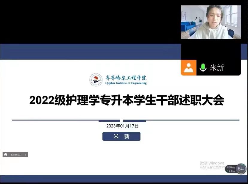 在学生干部述职结束后,特邀请专业长助理苏森森老师对2022级护理学专升本专业学生的学习情况进行总结,以及接下来努力的方向进行规划。最后,辅导员米新老师强调了几个问题:一是各班学生干部应落实好相应的职责,增强班级凝聚力,推进班集体建设。二是鼓励学生干部充分发挥带头作用,着力打造一支思想素质过硬,综合能力过强的学生干部团队,更好服务广大同学。