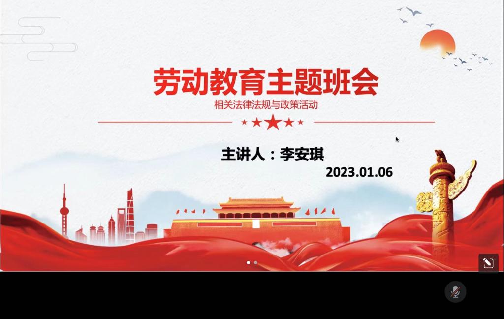 为提高同学们的第四学期劳动教育相关法律法规,更好的开展第四学期实践活动。护理学22级于2023年1月6日在腾讯会议组织开展“第四学期劳动教育相关法律法规与政策”主题班会,会议由辅导员李安琪老师主持,护理学22级全体同学参加。