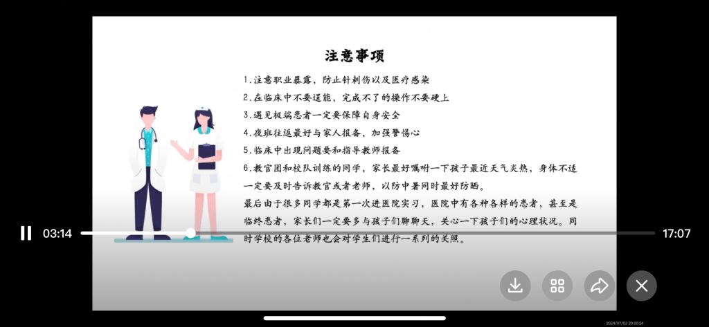会议期间,辅导员王诺老师首先重点介绍了对护理学生的培养目标和方案,以及护理学专业相关信息。强调了家校协同的重要性,旨在为学生提供更好的成长和发展支持。并详细介绍了毕业证与学位证发放的条件,倡议家长与学校共同监督学生的学习,做好家校共育。其次由护理学专业长孙晓雪详细介绍了护理学23级实践教学的实习地点以及各实习单位的时间安排,讲解了实践教学的主要内容、教学方法等。同时提出有关专业实践学期要注意的事项例如,提醒孩子注意职业暴露,防止针刺伤以及医疗感染、遇见极端患者一定要保障自身安全、夜班往返最好与家人报备,加强警惕心等。由于医院中有各种各样的患者,甚至是临终患者,家长们多与孩子们聊聊天,关心一下孩子们的心理状况。最后护理学23级实践学期家长会圆满结束,护理学专业长孙晓雪代表全体师生,向各位家长的到来表示衷心的感谢。