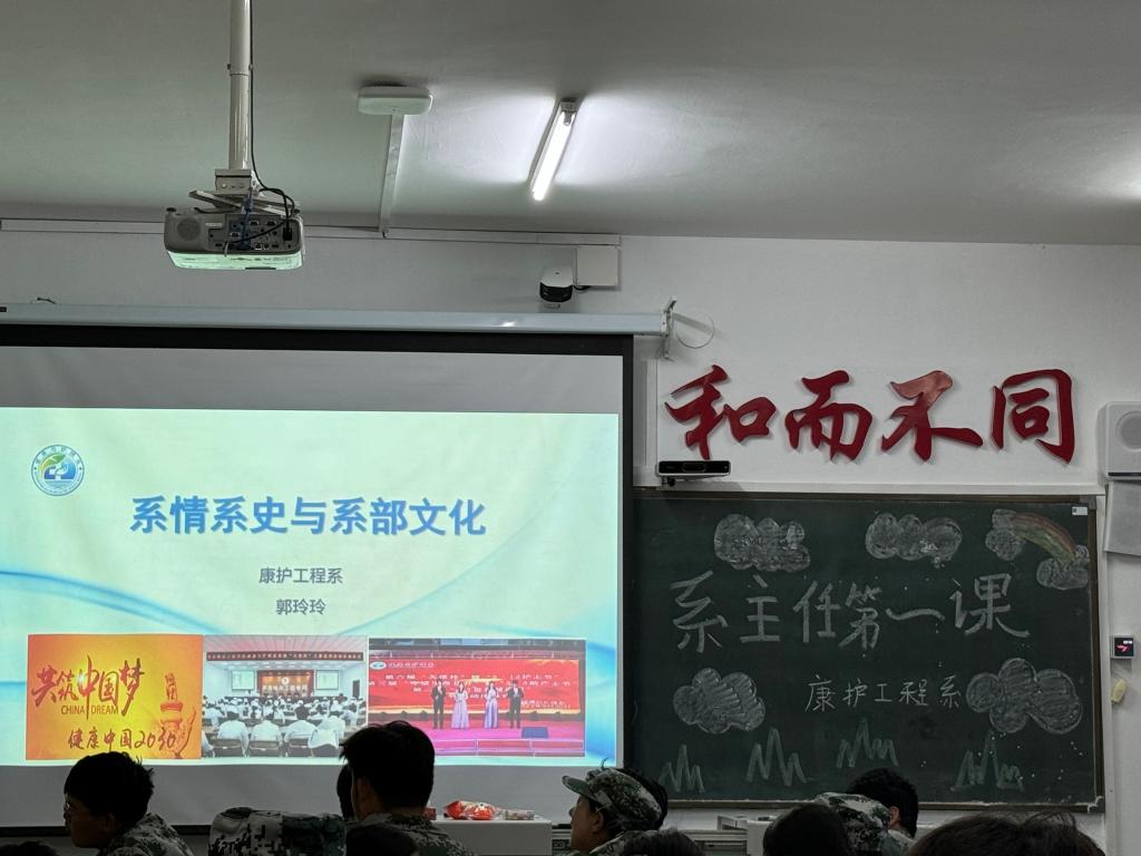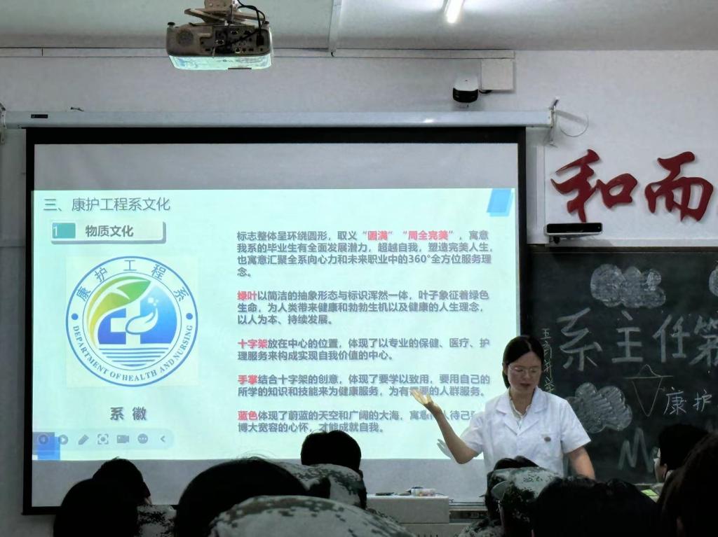 为深入学习贯彻全国教育大会精神,落实立德树人根本任务,引导新生适应角色转变、融入大学生活,坚定理想信念、传承亮剑精神。9月12日晚,康护工程系护理学K专业于1号教学区1202教室组织开展系主任第一课活动。系主任郭玲玲以《系情系史与系部文化》为题,为全体2024级护理学K专业同学授课。