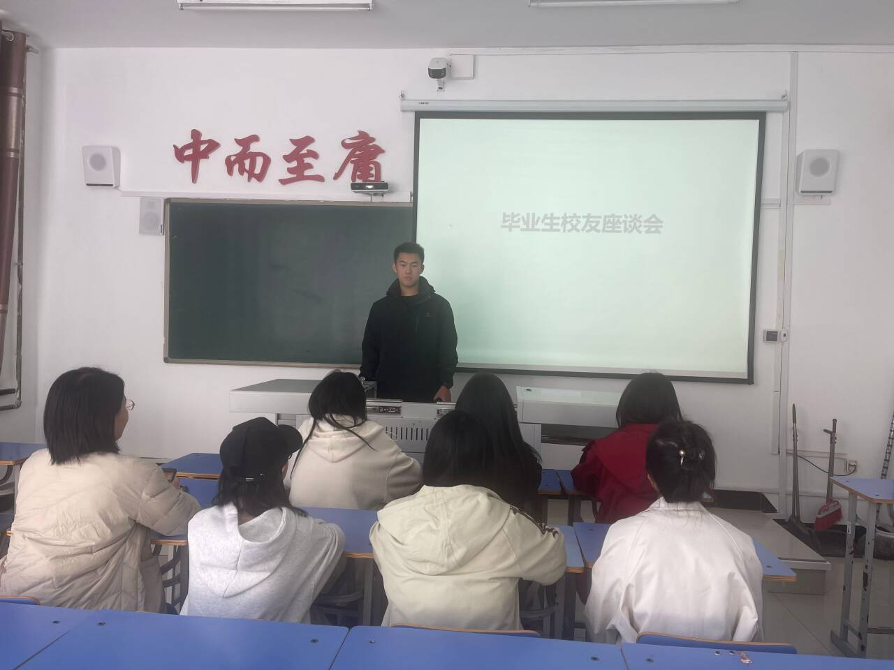 相玉秀老师介绍了白英楠同学是自己健管20级中非常优秀的生涯学生,现在留校已经是他们的老师,白英楠分享了自己大四在上海量健实习的经验和毕业后决定留校的想法,讲解自身的工作经历,劝诫在校的学弟学妹们努力学习基础知识和基本技能,为将来的工作打下坚实的基础,听了学长的分享同学们都非常有感触。