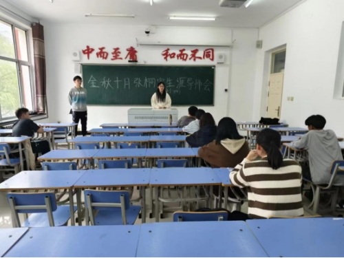 接下来,由组织长负责组织同学们对开学一个月来的学习情况和感受进行全面总结与分享。同学们提到了,军训让自己的作息变得规律,并磨炼了自己的意志品质,还提到了由于基础薄弱,部分课程学习较为吃力以及不会进行时间的规划。张桐宇老师针对同学们在学习上的困难与困惑提出了针对性的建议,并教授同学们一些学习方法和技巧,提醒同学们要做好时间的规划并利用好碎片化的时间,并要求同学们积极去图书馆借书,能够开阔自己的视野,增加与专业相关知识的储备。