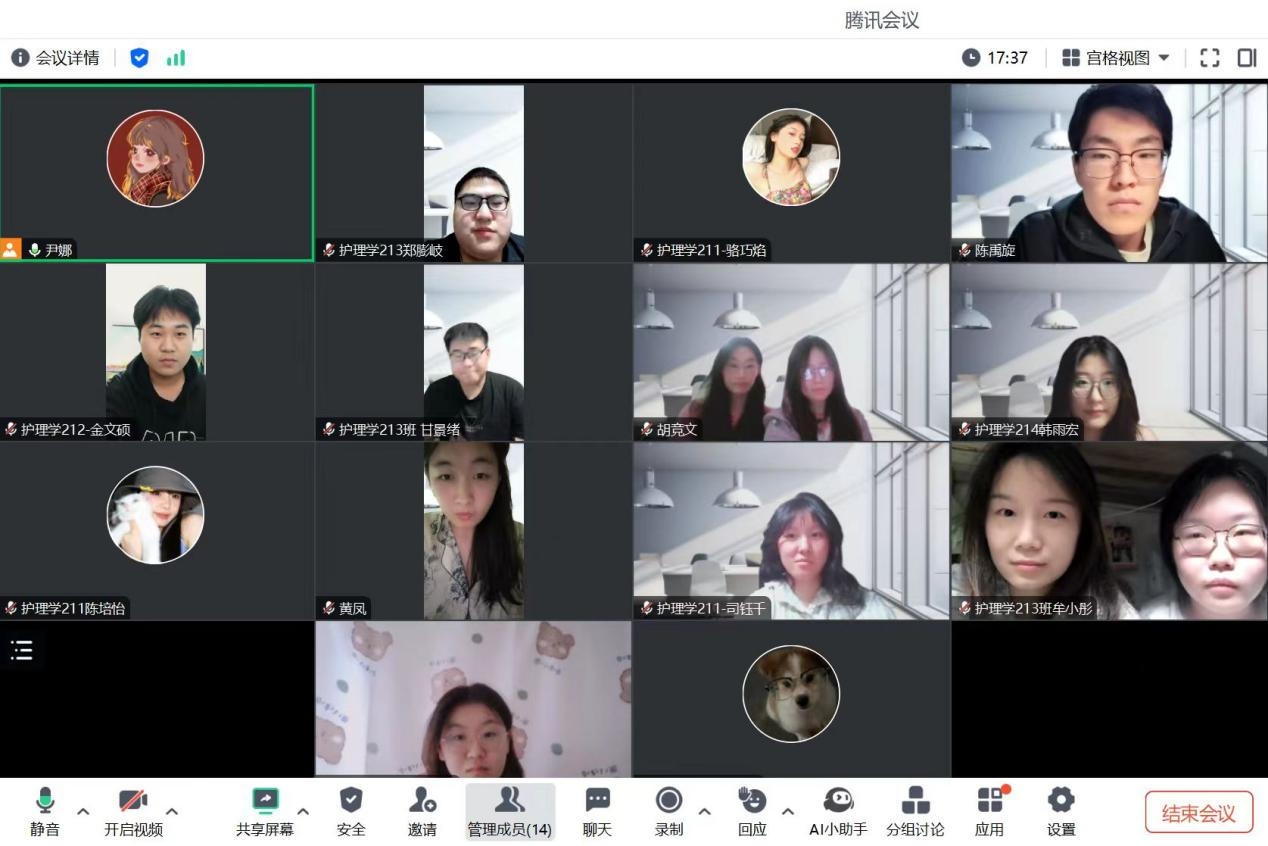 2024年11月3日晚,指导教师尹娜通过腾讯会议的方式召开天津市第四中心医院毕业实习11月份第1周实习阶段总结会议,会议由司钰千同学主持,全体实习学生参加。