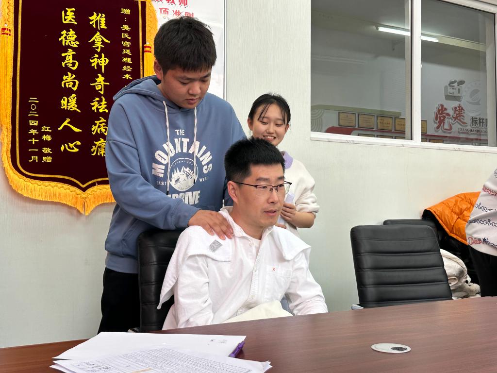 为普及推拿知识,帮助大众在冬季更好地维护身体健康,2024年11月14日下午三点半和11月15日上午十点半,康护工程系学工联合康护工程系工会和大新推拿社开展“冰雪冬季 推拿守护”活动,活动由康护工程系辅导员王诺负责,大新推拿社全体成员和所有生涯导师参加此次活动。