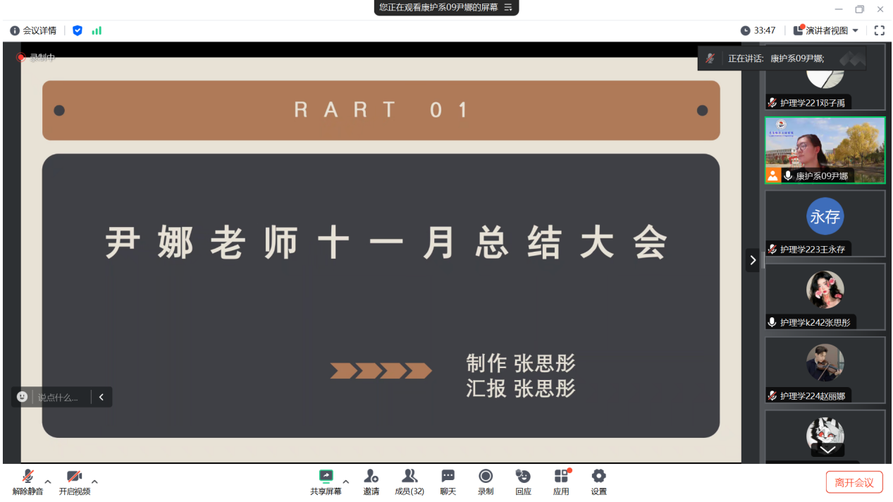 为引导学生合理学习,健康生活,积极规划未来。2024年11月29日20时,生涯导师尹娜在腾讯会议召开十一月份生涯会议,护理学K2024级学生张思彤主持,生涯组学生全员参加。