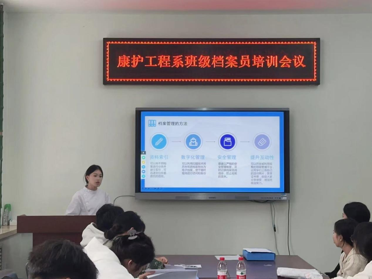 为进一步顺利开展学校班级档案管理工作,康护工程系于2024年10月14日组织召开2024级班级档案员培训会议。本次会议由康护工程系档案员学长张然、张宇琪主持召开,系兼职档案员老师及24级全体班级档案员参加。