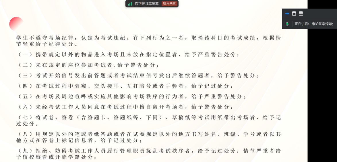 2024年12月19日 生涯导师李婷婷通过线上腾讯会议给学生召开“诚信应考”会议,引导学生树立正确的考试观念,营造公平公正的考试环境。