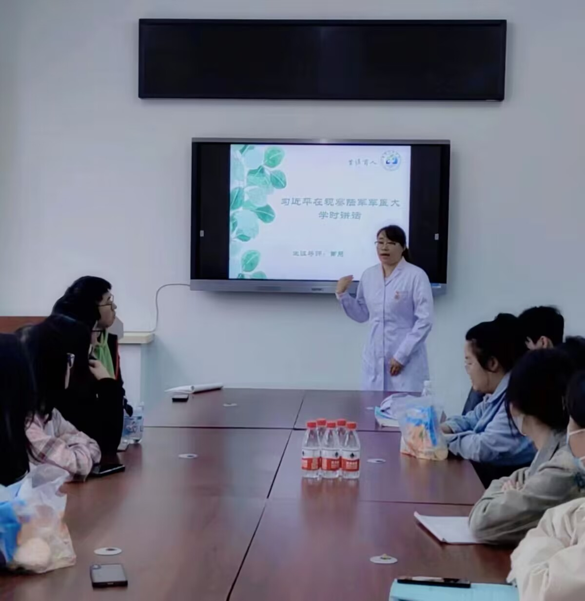 同时,曹慧老师还结合讲话中“有力服务部队战斗力,服务官兵身心健康”以及“培养德才兼备的新时代红色军医”等要求,引导同学们思考如何将个人的医学梦想与国家和人民的需求相结合。她强调,作为新时代的医学生,要心怀大我,勇于担当,不仅要关注自身的成长和发展,更要着眼于人民群众对健康的需求,积极投身到健康中国的建设中去,在服务人民的过程中实现自己的人生价值。