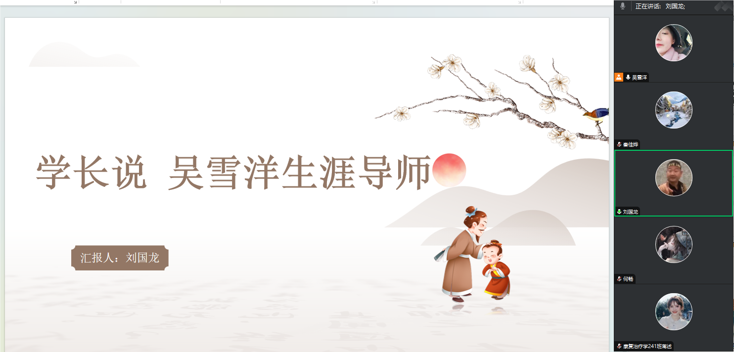 随着期末考试的脚步日益临近,2024级新生正面临着大学以来第一次期末复习的紧张与焦虑。2024年12月20日晚5点,生涯导师吴雪洋在腾讯会议召开学长说生涯会议,会议由吴雪洋老师主持,2023级护理学专业学长刘国龙,2024级康复治疗学专业生涯学生全部参会。