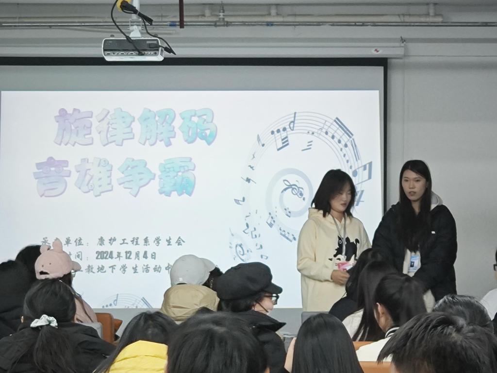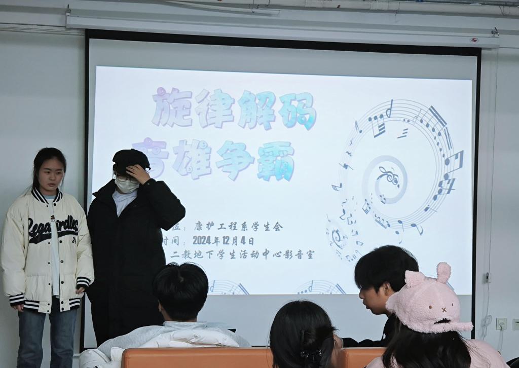为了丰富同学的课余生活,我们开展了康护工程系2024-2025学年度第二学期学生会旋律解码,音雄争霸活动。从而加强学生们的相处,也让同学们更加熟悉校园文化,让同学们感受到更多的乐趣。我系于2024年12月4日举办本次活动。本次活动由康护工程系学生会负责,参与人员为康护工程系学生。