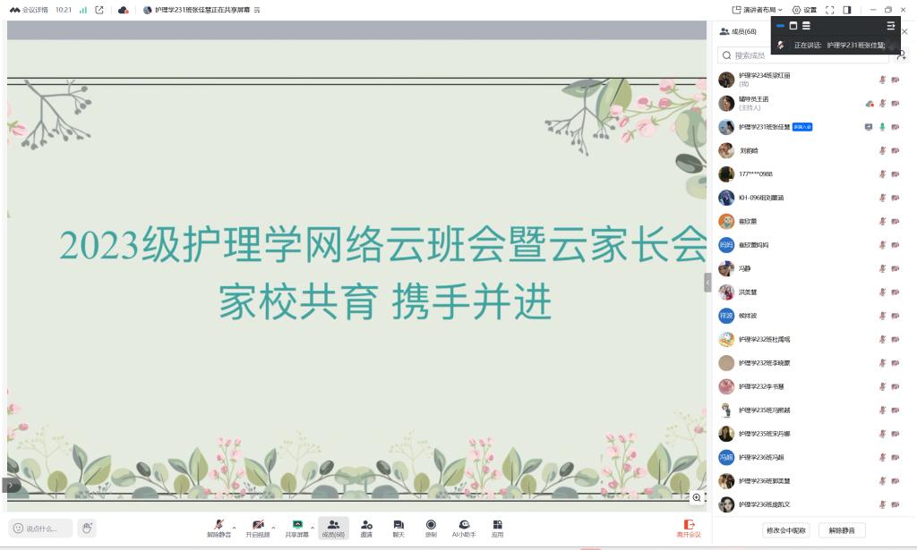 为了加强家校沟通,助力学生成长。护理学23级于2025年2月24日在腾讯会议开展“新学期家长会暨开学第一课班会”线上会议,此次会议由护理学231班张佳慧主持,护理学专业长孙晓雪老师、护理学23级辅导员王诺老师出席,护理学23级全体家长及学生参加。