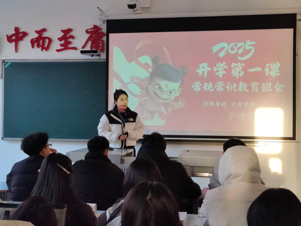 为进一步规范学生日常行为规范,明确学业发展要求。2025年3月3日,护理学22级分别在1#1201、1#1202组织召开了“开学第一课暨常规常识教育”主题班会。本次班会由辅导员李安琪老师主持,护理学22级全体学生参加。