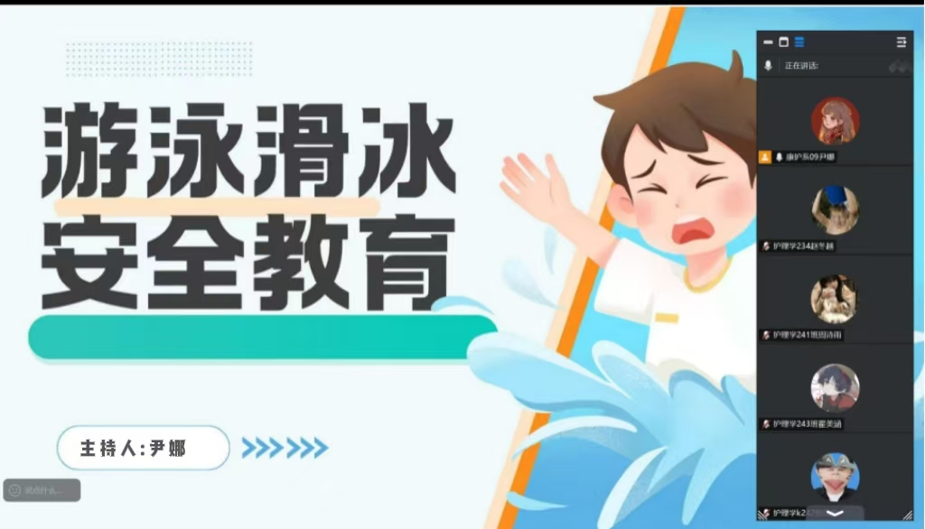 为强化学生安全意识、提升运动技能规范性,2025年3月10日,生涯导师尹娜通过腾讯会议平台组织大一和大二的全体学生召开“游泳滑冰安全教育”主题会议。会议围绕游泳与滑冰课程中的安全要点展开。