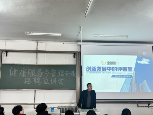 在随后的环节中,仲善堂中医诊所的白经理和侨信国际健康集团的相关负责人也依次进行了行业、企业趋势的宣讲,从不同角度深入分析了健康管理行业的发展前景和就业形势,让同学们对未来的职业发展有了更清晰的认识。宣讲结束后,各企业进行了现场和线上面试。同学们积极投递简历,与企业招聘人员进行深入交流,展示自己的专业技能和综合素质。企业招聘人员也认真解答同学们的疑问,为同学们提供了专业的建议和指导。