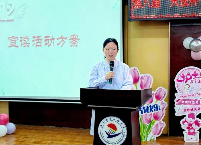 接下来,由康护工程系主任郭玲玲宣读活动方案,详细介绍了各专业的活动安排。如护理学专业的实践操作竞赛、助产学专业的模拟分娩实践活动、健康服务与管理专业的社区健康调研活动、康复治疗学专业的康复技能展示活动,以及护理学专升本专业的学术交流论坛等。她还强调了这些活动对学生提升专业能力、服务社会的重要意义。让在场师生对后续系列活动充满期待。