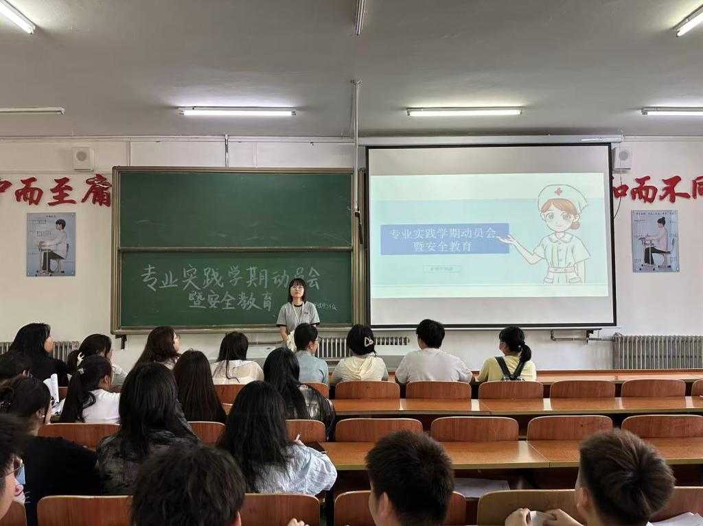 为帮助23级护理学专业学生充分做好专业实践学期准备,明晰实习方向与要求,5月29日,医学院护理学专业在一号教学区1101教室召开护理学23级专业实践学期动员会暨安全教育,专业负责人于晶老师和辅导员王诺老师主持会议,23级全体护理学专业学生参与其中。