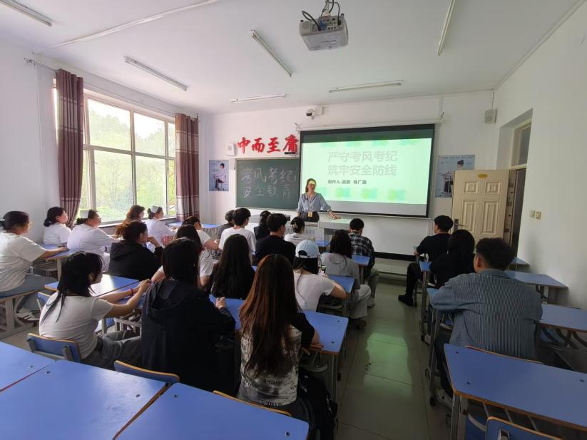 首先,尹娜老师详细梳理了期末备考时间轴,提醒学生注意各科考试日程的交叉节点。针对高频出现的备考焦虑问题,她现场为大家进行答疑解惑,为学生讲解了考试的考风考纪,提醒学生好好复习,严厉打击作弊行为。然后,尹娜老师为大家解答了一些暑假实习期间的问题,提醒同学们有任何问题可提前和老师沟通,同时,为同学们介绍了学校的一些实习地点和相关要求。