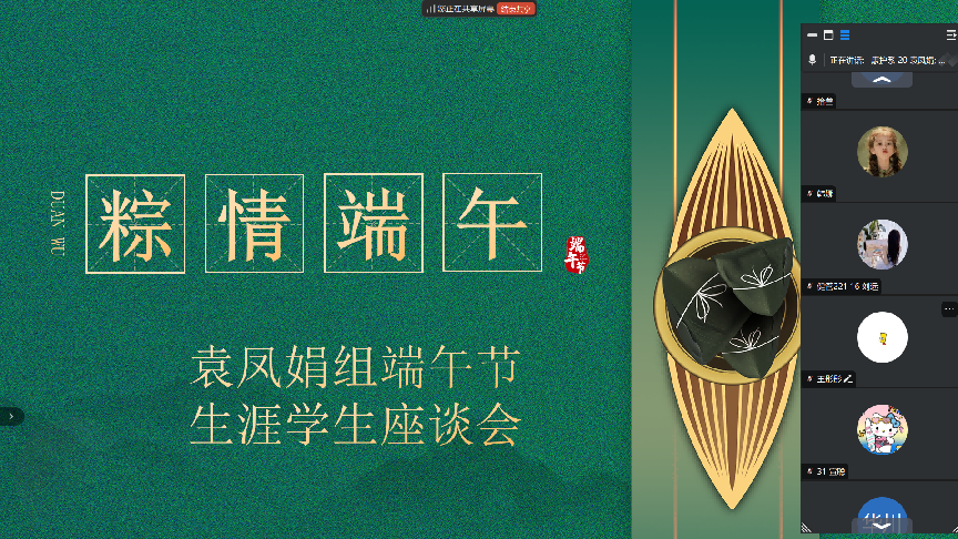 端午佳节将至,为传承传统文化、关怀学生成长,生涯导师袁凤娟于5月28日组织召开“端午安康·学业护航”主题座谈会,本次会议由袁凤娟老师主持,袁凤娟老师及袁凤娟老师的生涯学生参加。
