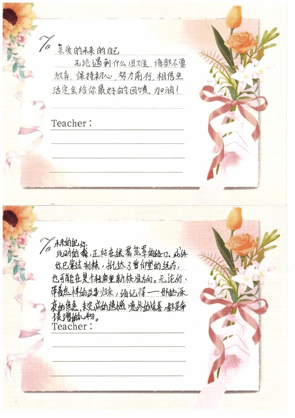 此次活动为学生搭建了与未来自我对话的桥梁,让他们在忙碌的学习生活中停下脚步审视内心,明确前行方向,同时深化了师生情感交流,助力学生在成长之路上带着温暖与鼓励坚定前行。