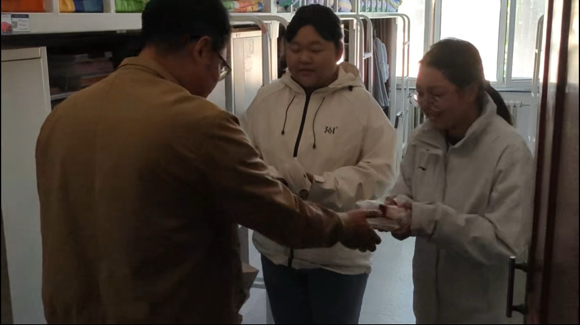 一份份月饼与水果被轻轻送入宿舍,温暖的情谊也随之在楼层间流转。姜宏伟书记亲手将礼物交到同学们手中,并贴心叮嘱大家合理安排假期生活,注意劳逸结合,同时提醒注意人身与财产安全。姜宏伟书记走进一间间寝室,细致了解同学们近期的学习进展与生活状况,从学业安排到日常起居,一一关切询问。同学们也热情分享假期的学习计划与生活趣事,寝室里洋溢着轻松融洽的氛围。收到这份突如其来的节日心意,同学们脸上绽放出灿烂的笑容。那笑容里有惊喜,更有感动,映照出“此心安处是吾乡”的归属与温暖。一声声真诚的“谢谢”在走廊间回响,师生之间的情感也在交流中愈发贴近。