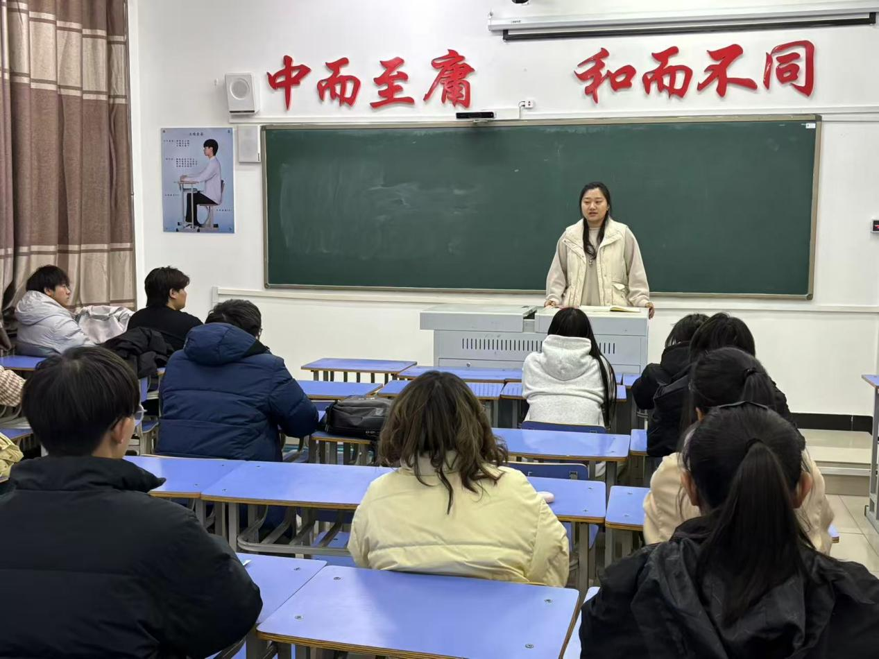 会上,杜老师首先关注同学们的心理健康状态。她提到,十月是学业压力逐步增加以及大学生情感问题频发的时期,部分同学可能出现焦虑情绪,建议大家通过合理安排作息、主动与师生沟通、参与户外活动等方式缓解压力,以积极心态投入学习和大学生活中。