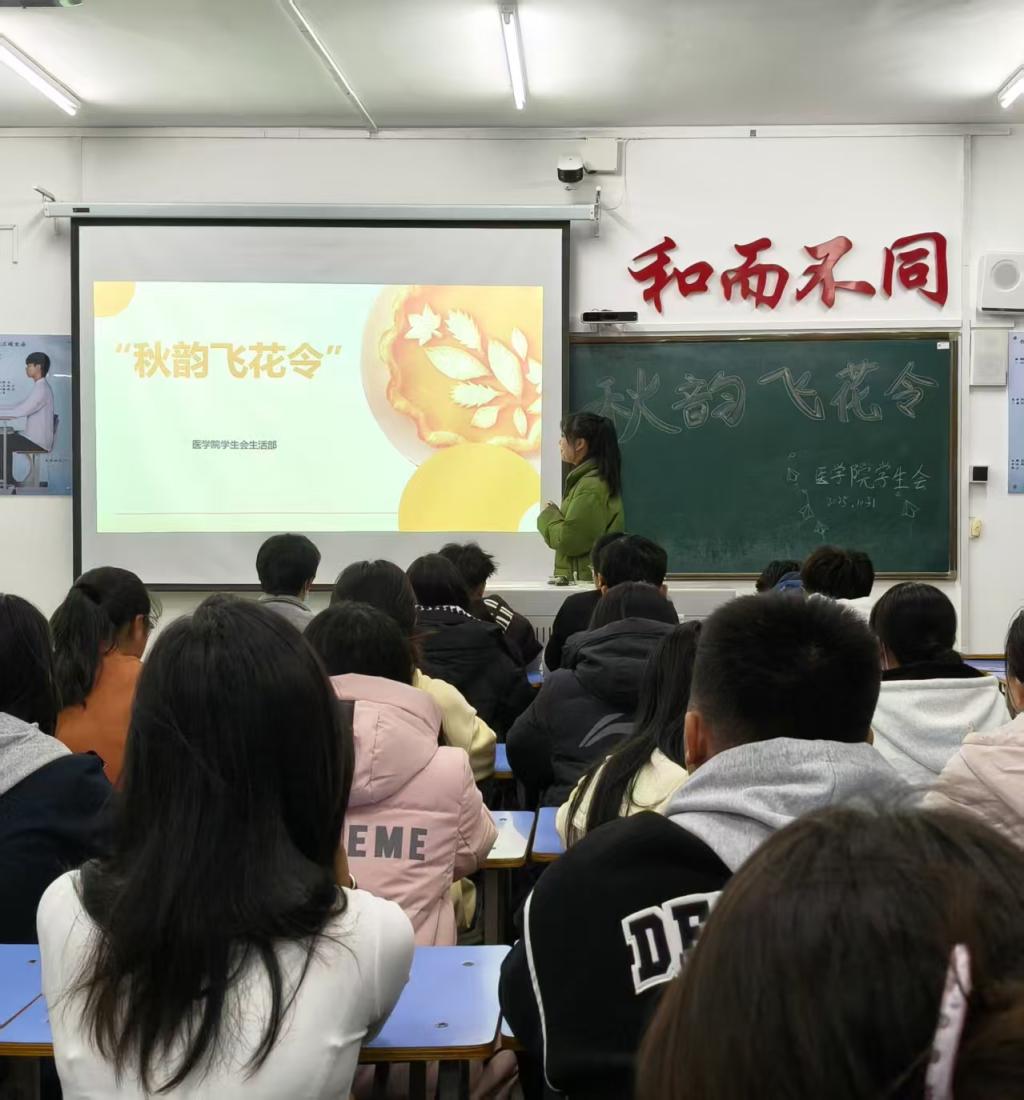 为丰富医学生的文学素养与人文关怀,让大学生活增添新色彩,引领大学生弘扬中华传统文化,提升人文素养10月31号18:00-19:30,由齐齐哈尔工程学院医学院主办,医学院学生会承办的“秋韵飞花令”主题诗词分享活动,在1#1302教室顺利开展,医学院全体同学积极参与其中。