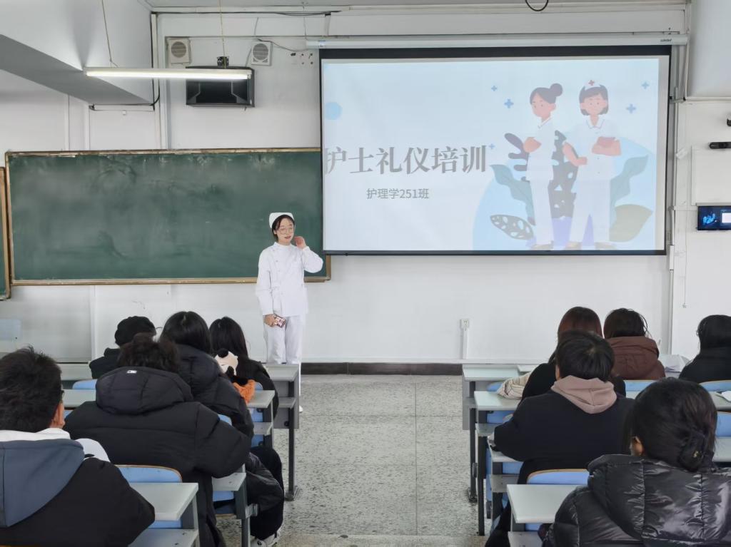 为规范护士职业礼仪,夯实护理专业基础,11月17日,医学院护理学专业开展护士礼仪专项培训活动,由护理学专业长于晶、护理学教师金璐联合组织,23级技能学长面向25级全体护理专业学生开展护士礼仪及护士帽佩戴相关培训与实操指导。