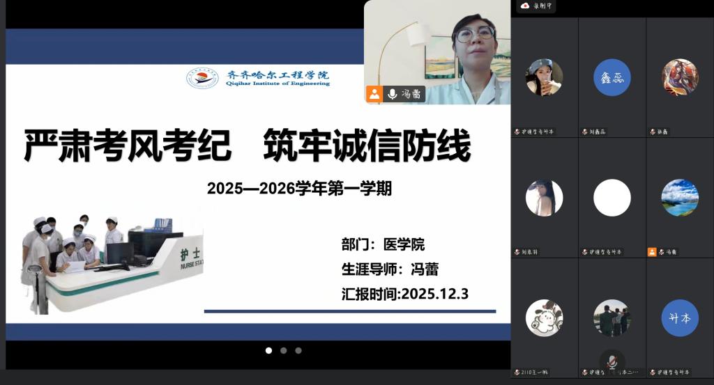 为了营造公平、公正、诚信的考试环境,确保期末考试的顺利进行,12月3日,冯蕾老师组织召开了期末考试考风考纪线上专项会议,冯蕾老师全体生涯学生25人共同参与。