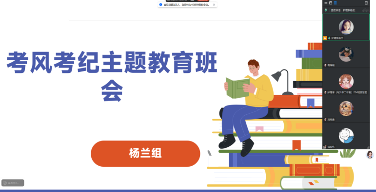 临近期末考试,为营造公平公正的考试环境,引导学生树立正确考试观念,12月3日晚上,杨兰老师于腾讯会议中开展“考风考纪教育”主题班会,杨兰老师生涯学生全员参与,全面推进考风考纪建设教育工作。