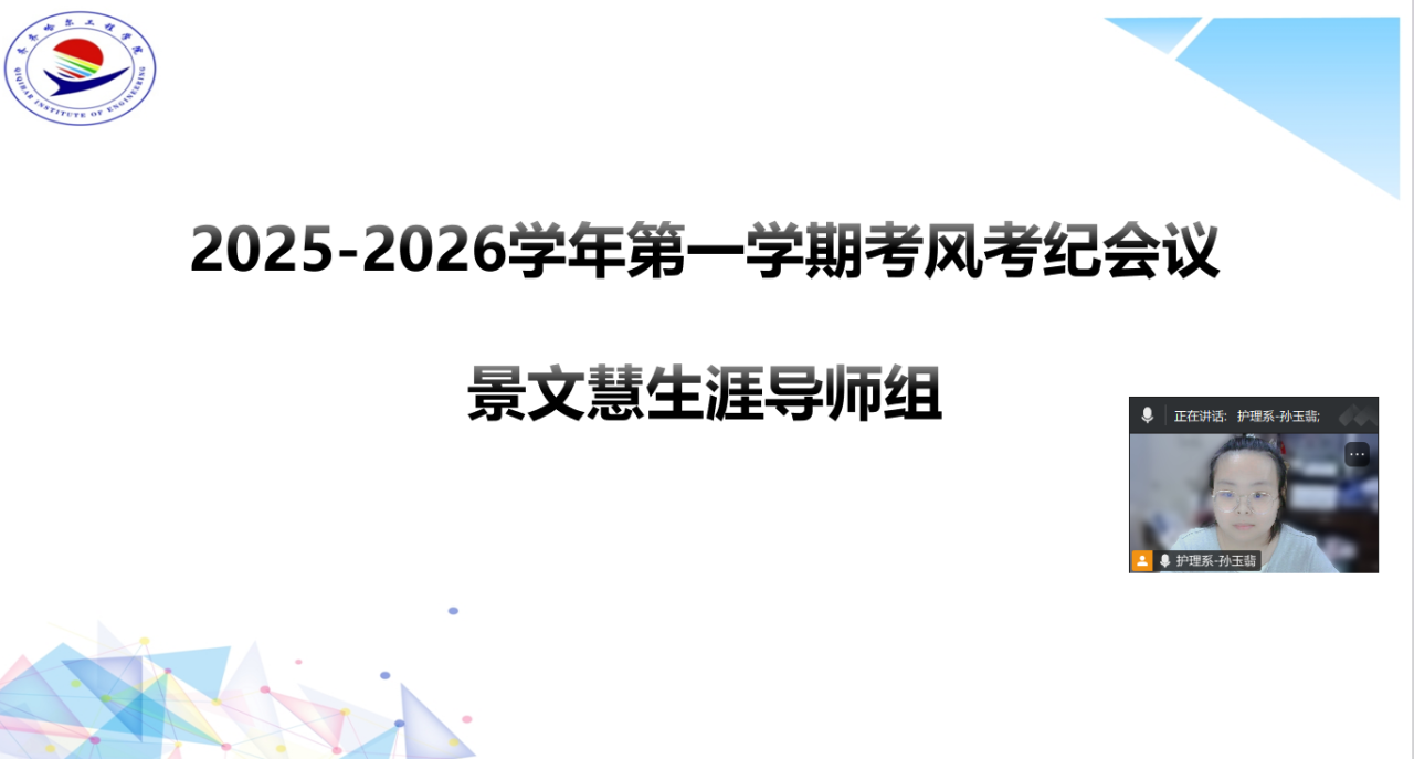 景文慧老师围绕学校考试管理规章制度,从考前准备、考场规则、答卷规范、违纪行为认定标准及相应处理办法等方面进行了全面细致的解读。为让纪律要求入脑入心,她还结合校内外考试违纪的典型案例,深入剖析了作弊行为对个人学业发展、职业诚信记录乃至行业声誉造成的严重危害,着重提醒同学们务必摒弃侥幸心理,严守纪律红线,自觉抵制各类违纪作弊行为,以真实成绩检验学习成效。
